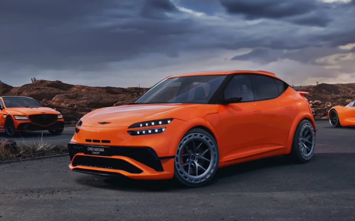 Genesis — Hyundai's luxury line, like Lexus is to Toyota — has adopted Magma as its performance color, and it's hot on the upcoming 2027 all-electric GV60 Magma (above).